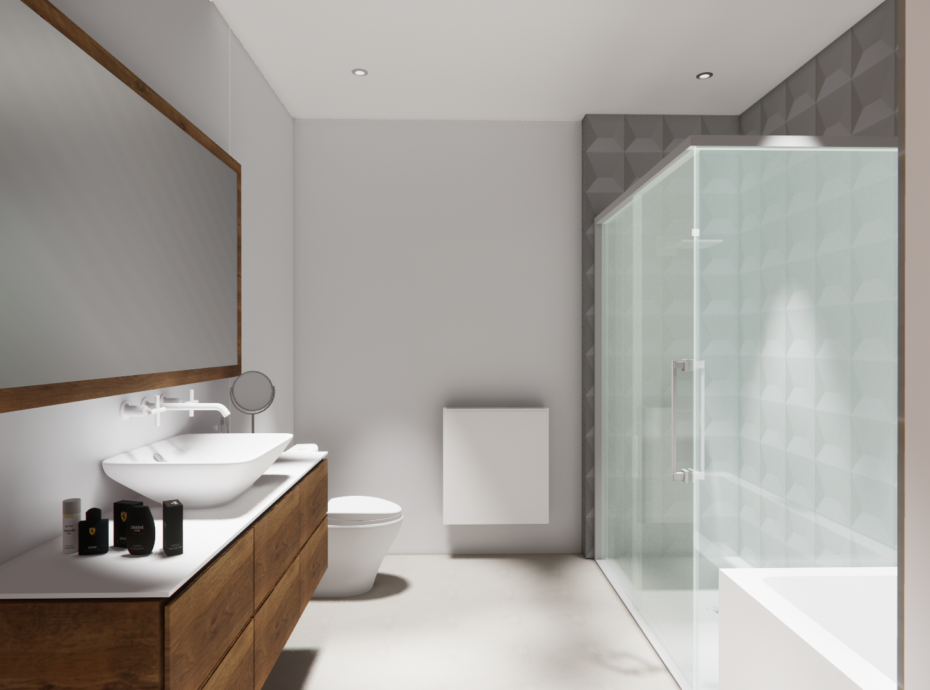 • Douche en céramique avec porte en verre